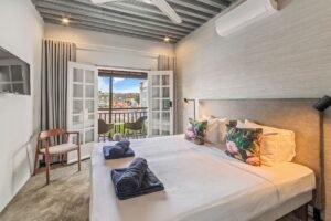 Pietermaai District | Villa Bonbini is gevestigd in een romantisch, nieuw gebouwd herenhuis met 6 luxe appartementen die samen een villa vormen: Twee met ruim uitzicht over zee, twee met uitzicht op de stad en twee met zeezicht op de begane grond. Wilt u verblijven in een boutique-stijl appartement met persoonlijke aandacht, comfort en een gedetailleerd thuisgevoel met volledige privacy? Villa Bonbini ligt in de kleurrijke en historische wijk Pietermaai, op loopafstand van veel uitstekende en lokale restaurants, in een veilige en charmante Unesco-werelderfgoedzone.